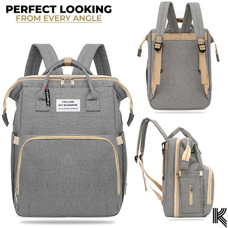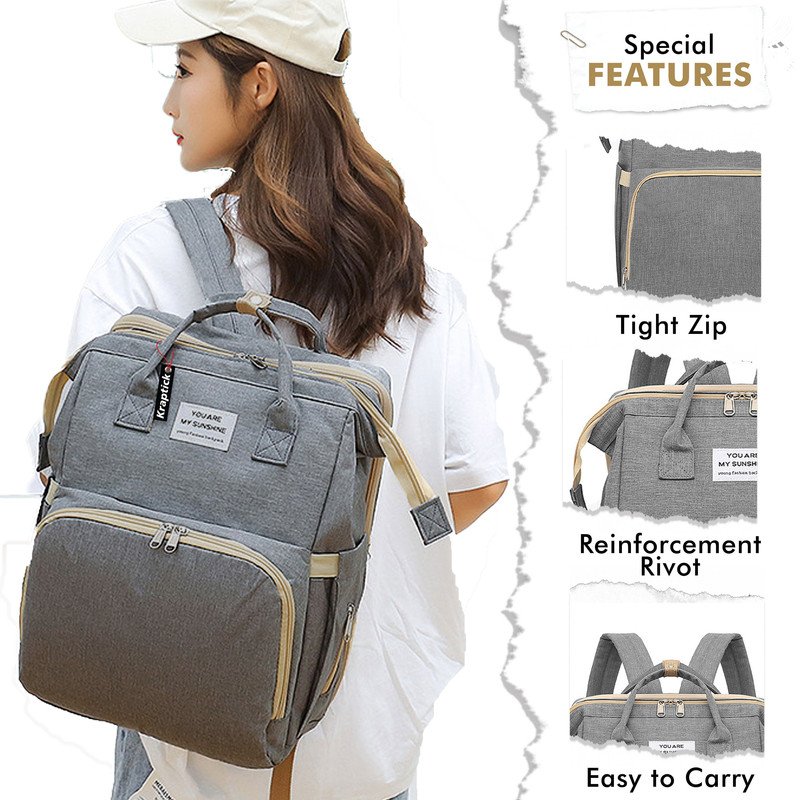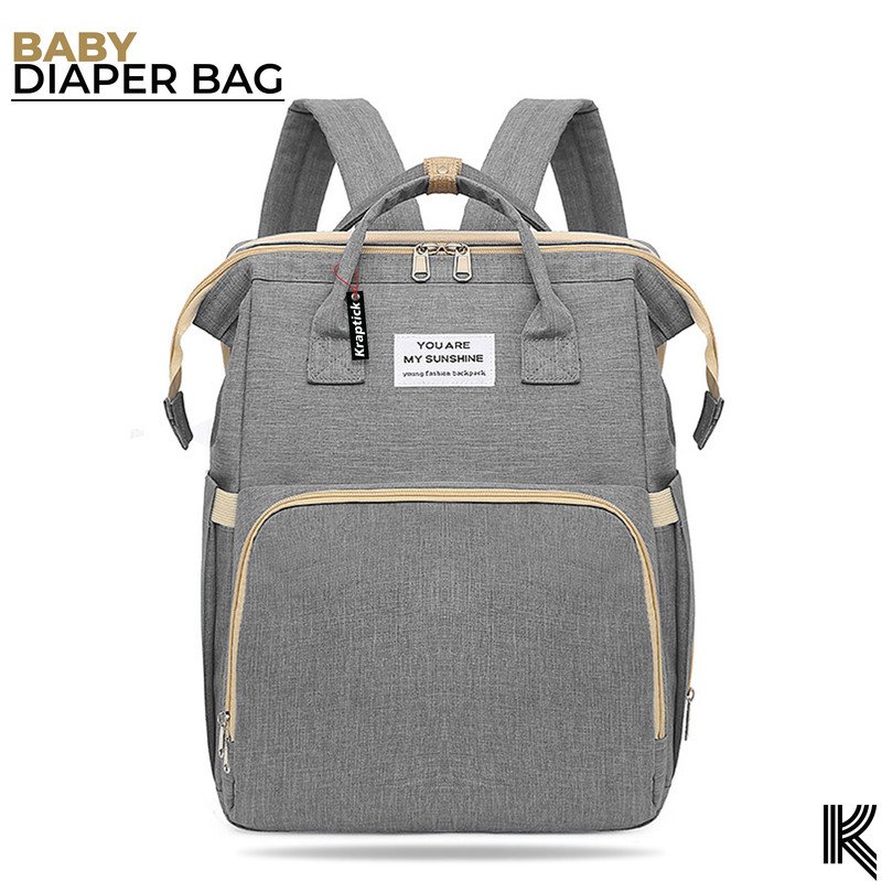 Kraptick Diaper bag backpack, diaper bags for mom for travel, baby diaper bag with changing station, maternity bags for mother and baby, nursing bags for mothers, foldable diaper bag (Grey)(MFP303)