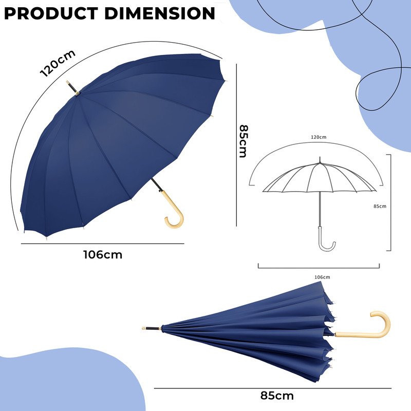 • LONG HANDLE FOR COMFORT – Our long handle umbrella offers a comfortable grip, making it easy to carry and use. The long handle umbrella is perfect for long walks, providing you with the support you need.
