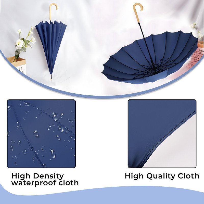 • HIGH-QUALITY MATERIAL – Made from high-quality materials, this 16 bone umbrella is designed to last. The automatic opening mechanism ensures durability and reliability in any weather. The umbrella’s construction is robust, providing excellent protection against wind and rain, making it a dependable choice for all.