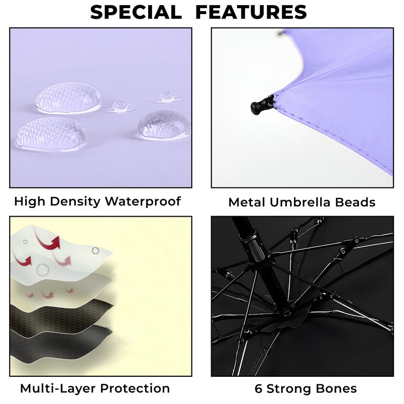• HIGH-QUALITY MATERIAL – Made from high-quality materials, this 6 bone umbrella is designed to last. The automatic opening mechanism ensures durability and reliability in any weather. The umbrella’s construction is robust, providing excellent protection against wind and rain, making it a dependable choice for all.