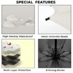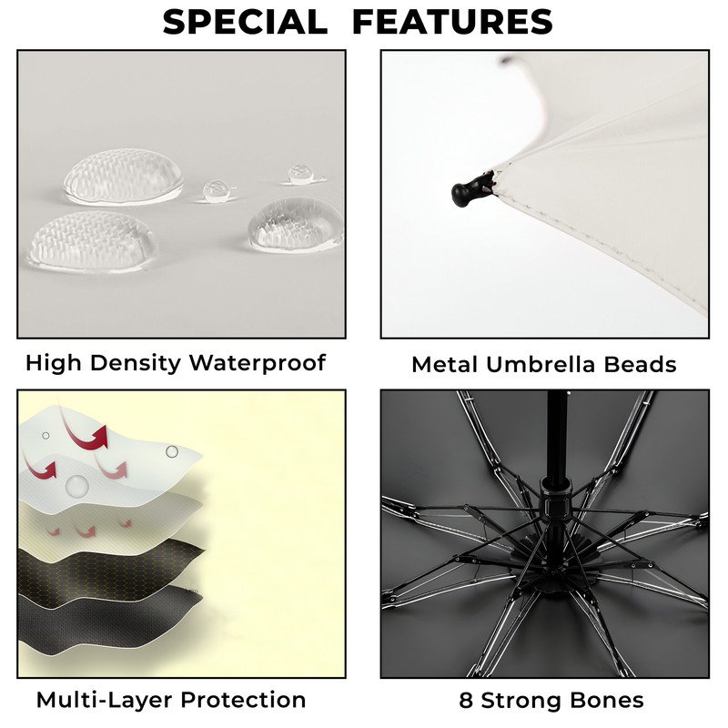 • HIGH-QUALITY MATERIAL – Made from high-quality materials, this 8 bone umbrella is designed to last. The automatic opening mechanism ensures durability and reliability in any weather. The umbrella’s construction is robust, providing excellent protection against wind and rain, making it a dependable choice for all.
