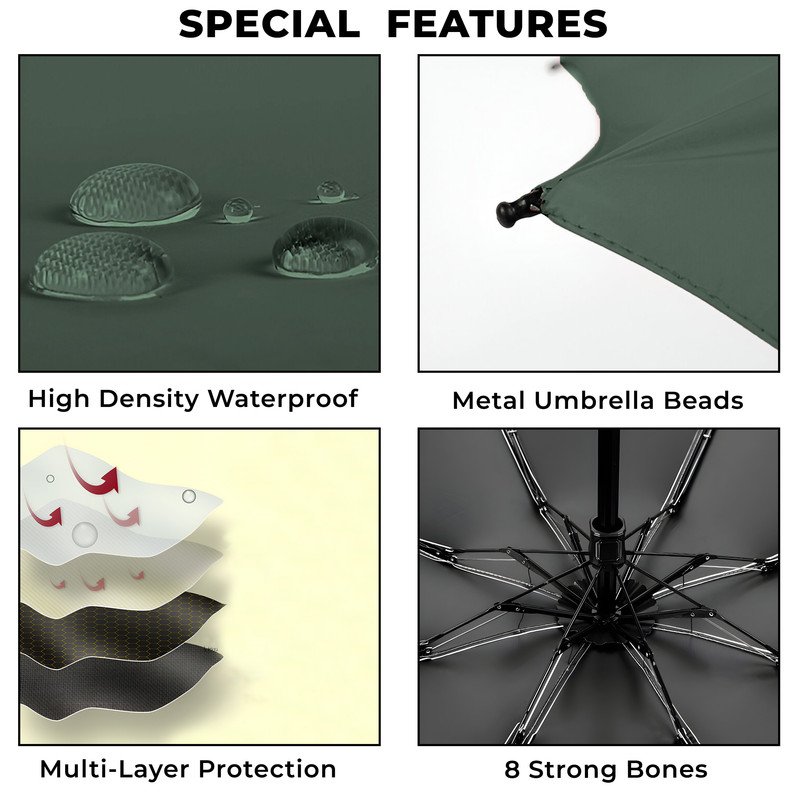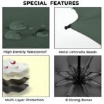 • HIGH-QUALITY MATERIAL – Made from high-quality materials, this 8 bone umbrella is designed to last. The automatic opening mechanism ensures durability and reliability in any weather. The umbrella’s construction is robust, providing excellent protection against wind and rain, making it a dependable choice for all.