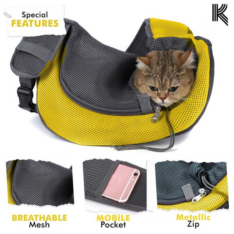 Kraptick Pet Sling Carrier, Pet Carrier Bag for Shitzu Puppy, Cat, Rabbit with Comfortable Adjustable Pouch Single Shoulder Carry Tote Handbag for Pets, Large Size (Yellow)(MFP230)