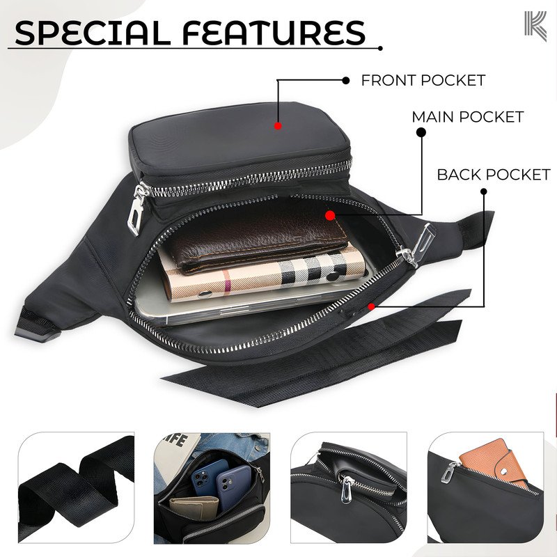 Kraptick Unisex Waist Bag a Premium accessory that combines the functionality of a Fanny Pack, Hip Bag, and Travel Pouch. designed for outdoor , runners, hikers, and sports.this versatile waist bag offers durability, style, and convenience. With its adjustable straps and multiple compartments, it provides a Secure and Comfortable fit while keeping your Essentials Organized on the go. Made with High-quality Materials, the Kraptick Waist Bag is built to withstand outdoor adventures and everyday use.