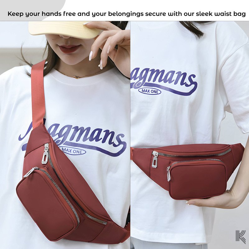 Kraptick Premium Unisex Waist Bag for Men and Women – Stylish Fanny Pack, Hip Bag, Travel Money Belt (Maroon)(DMFP150)