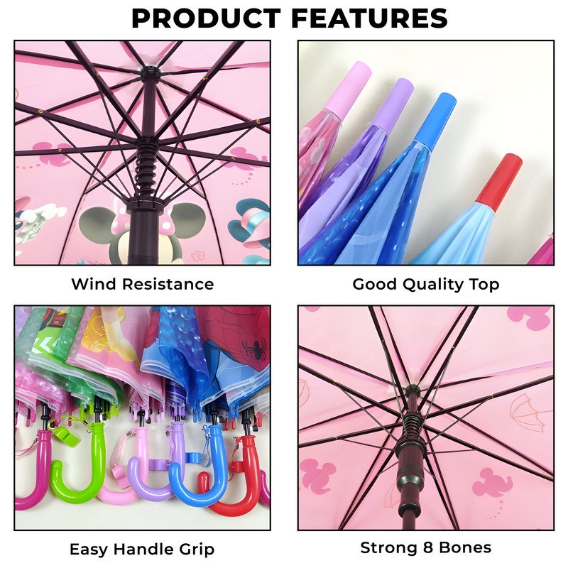 • CUTE AND FUN DESIGN – The cute kids umbrella features fun and playful prints that children will love. The print umbrella for kids is available in various designs, making it a fashionable choice for any child. The colorful umbrella for kids adds a splash of color to any rainy day.