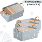 Kraptick Storage Bag for Clothes, Cloth Organiser for Storage, Under Bed Storage Bag, Wardrobe Bags for Clothes Storage, Organiser for Clothes Bag (Blue) (Pack of 3) (47cmX28cmX20cm) (DMFP696)