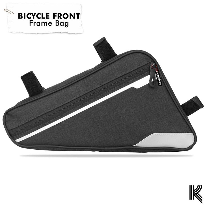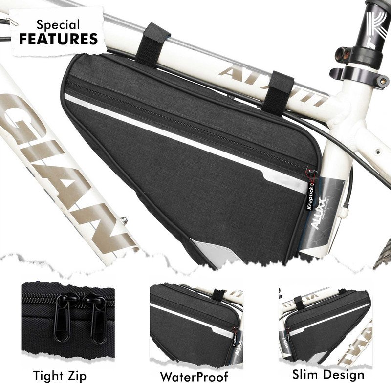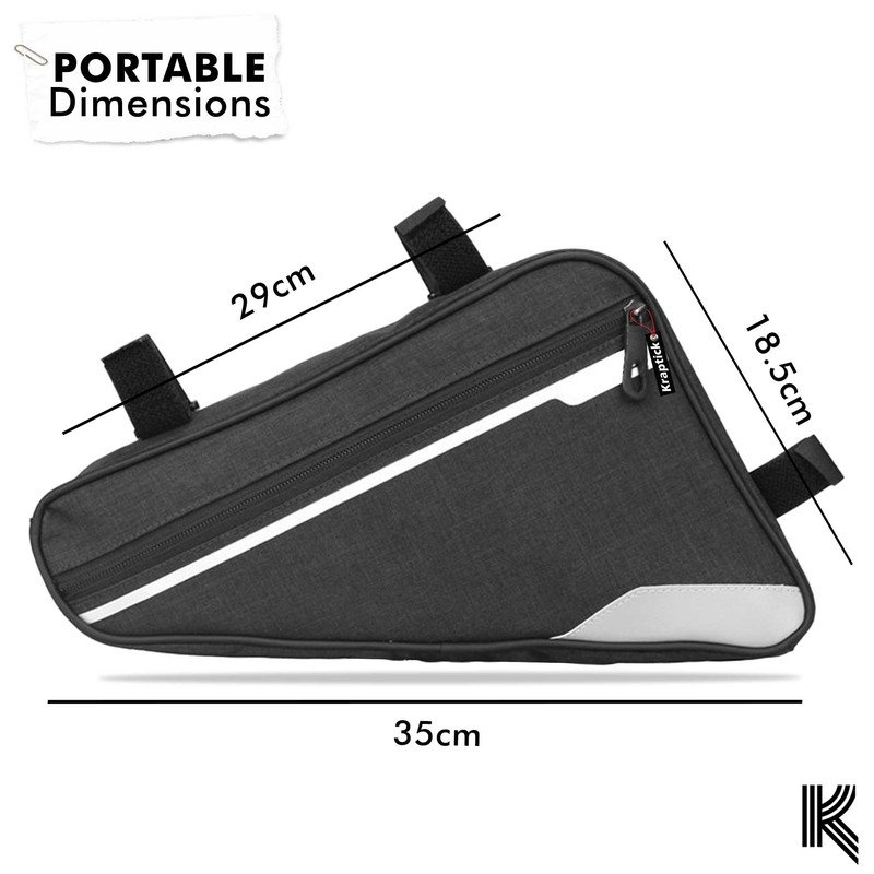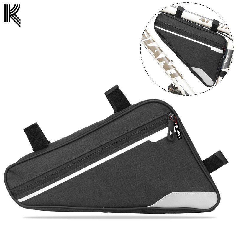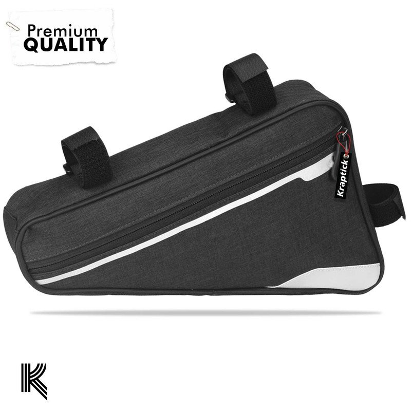 Kraptick Triangle Bike Bag [Waterproof] – Big Triangle Frame Bag for Bicycle for Lock, Tools, Cycle Accessories – Bike Pouch, Bike Bags with Reflective Straps and Plenty of Storage (Black)(MFP247)